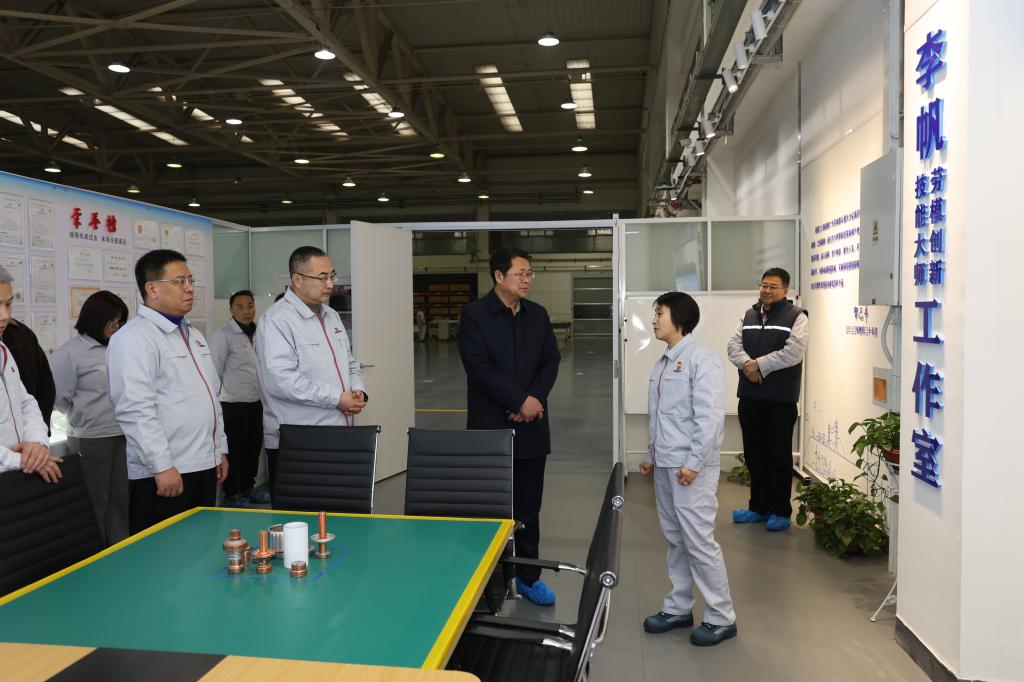 馬宏偉一行首先參觀了寶光集團所屬寶光股份滅弧室產品制造部3號產線、5號智能制造產線、李帆勞模技能大師工作室,詳細了解了企業發展歷程及技術創新、智能制造方面的情況,聽取了工作室在職工創新、技藝傳承、數字化制造技術應用等方面取得的成果。