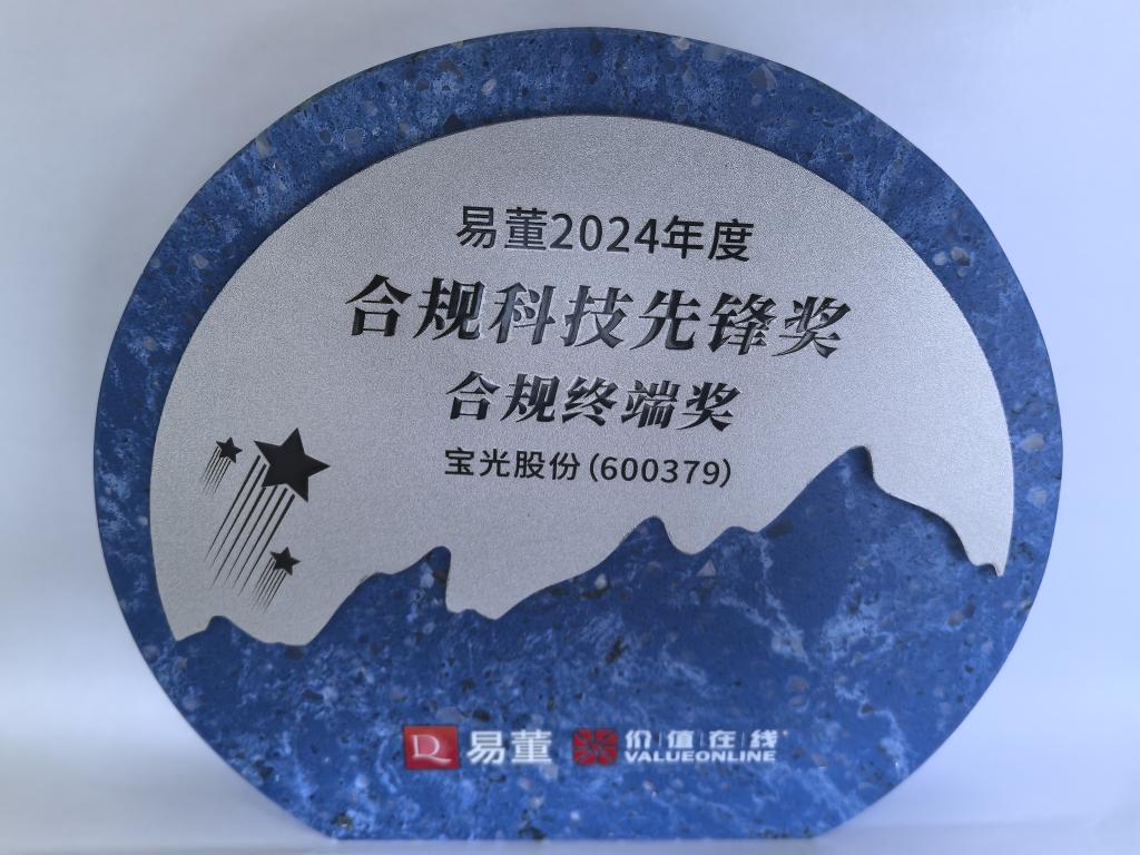 近日,由價值在線、董事會雜志社聯合主辦的易董2024年度合規科技先鋒獎揭曉。寶光股份憑借在合規管理工作上的優異表現,斬獲“易董2024年度合規科技先鋒獎——合規終端獎”。