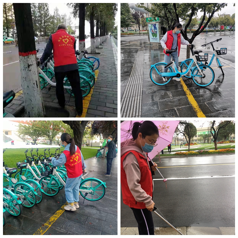 在近日連續(xù)強降雨的天氣里,志愿者們風雨無阻每天早上堅持7:30按時到崗開展志愿服務活動。他們身穿紅馬甲,手拿垃圾夾,冒雨沿著金渭大橋南至寶光路轉(zhuǎn)盤巡回開展志愿活動,認真地清理路面上的碎紙屑、飲料罐、煙頭等垃圾。同時將共享單車擺放在規(guī)定的區(qū)域內(nèi),保持整齊美觀和人行道路的通暢。